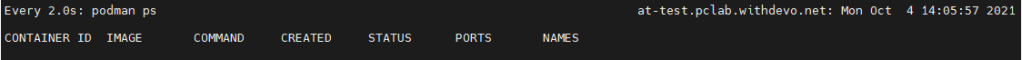 This can be validated by running “watch podman ps” on (a) execution node(s).
