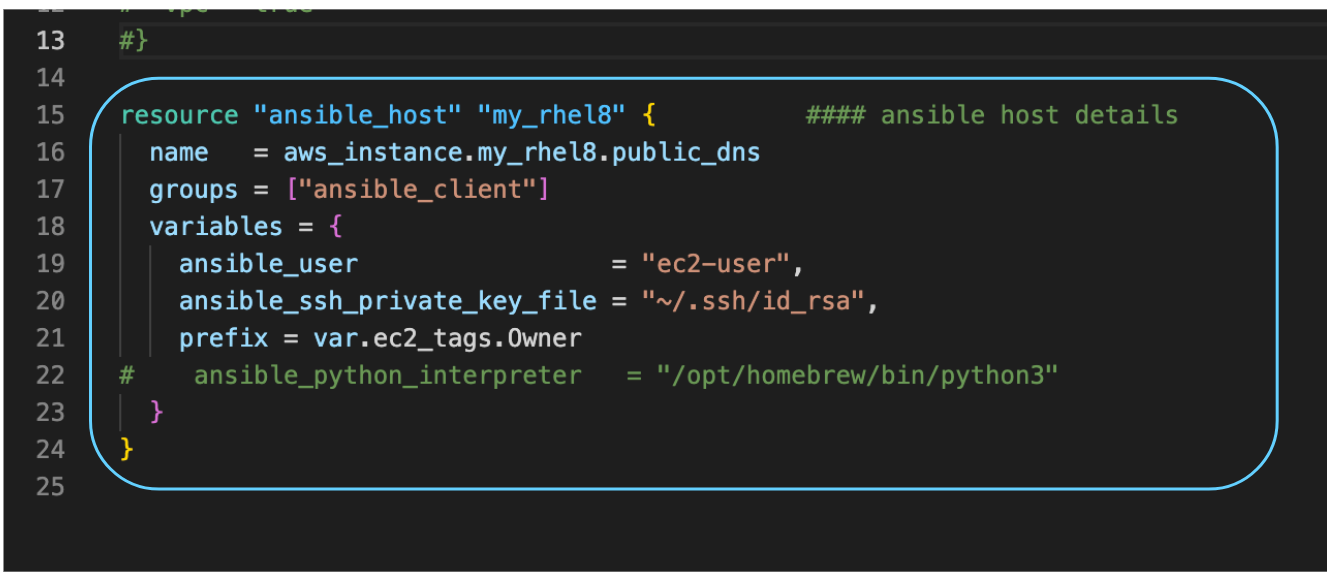 2. Terraform – build an ansible inventory with a host section with extra variables that use “Owner” tag from above.