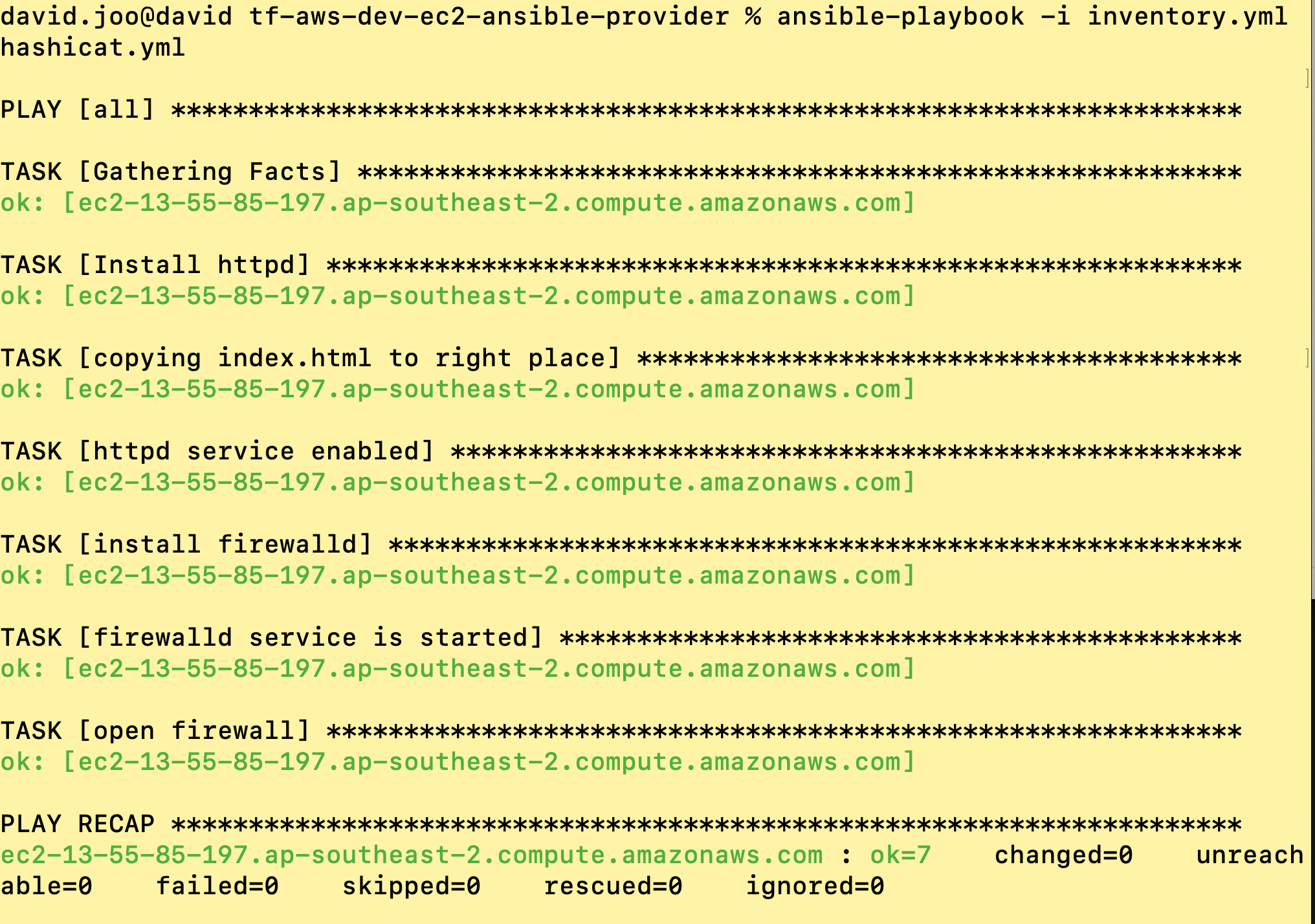 $ ansible-playbook -i inventory.yml hashicat.yml